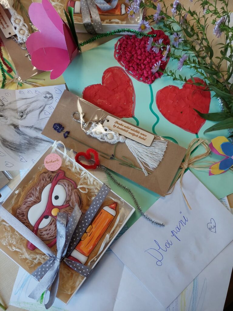 Rano odbyła się Gala z okazji Dnia Edukacji Narodowej. W sali zebrali się wszyscy pracownicy przedszkola. Dzieci zaprezentowały przygotowany występ artystyczny. Następnie wręczyły swoim Paniom oraz Panu Norbertowi własnoręcznie wykonane kubki oraz śmieszne portrety.