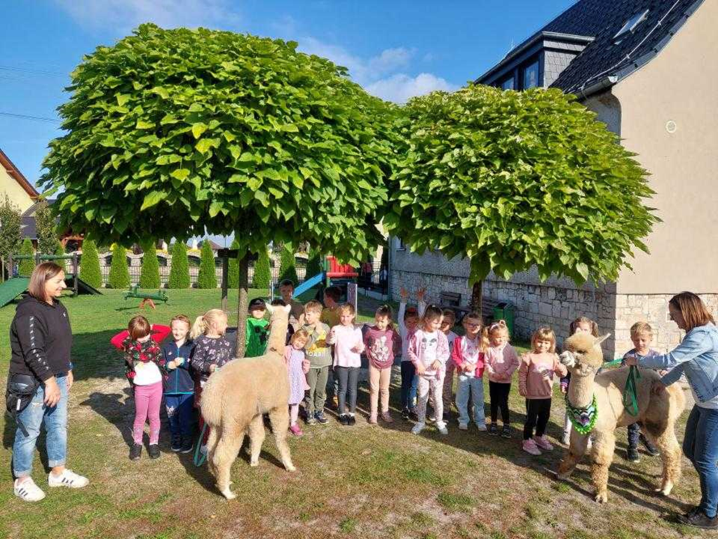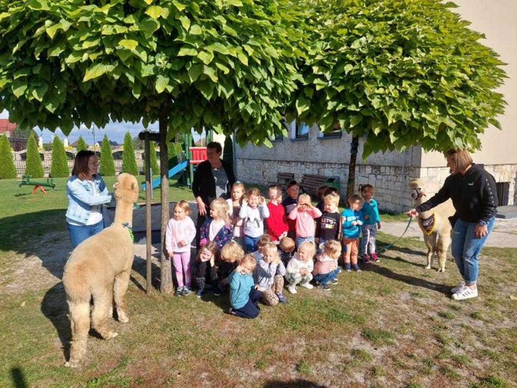 Bardzo dziękujemy Pani Annie Szlosarek za zorganizowanie spotkania z alpakami oraz przygotowanie dla wszystkich przedszkolaków materiałów do pracy plastycznej 🙂 Z pewnością te zwierzątka jeszcze nie raz zagoszczą w naszym ogrodzie przedszkolnym!